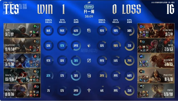 虎扑01月21日讯 TES蓝色方,IG红色方